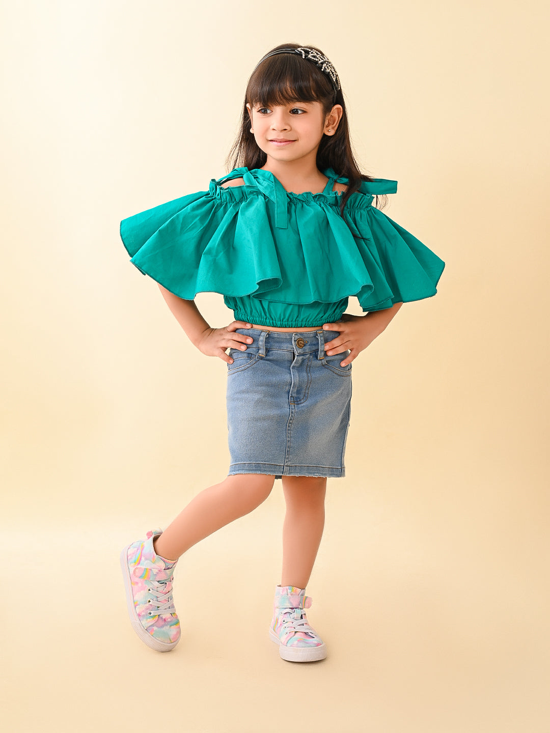 Solid Off Shoulder Frilled Crop Top
