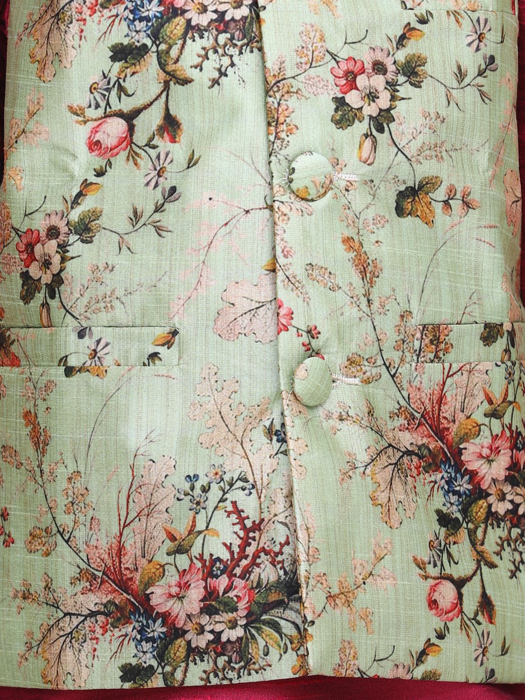 Wine Kurta Churidar with Pista Green Floral Digital Print Nehru Jacket