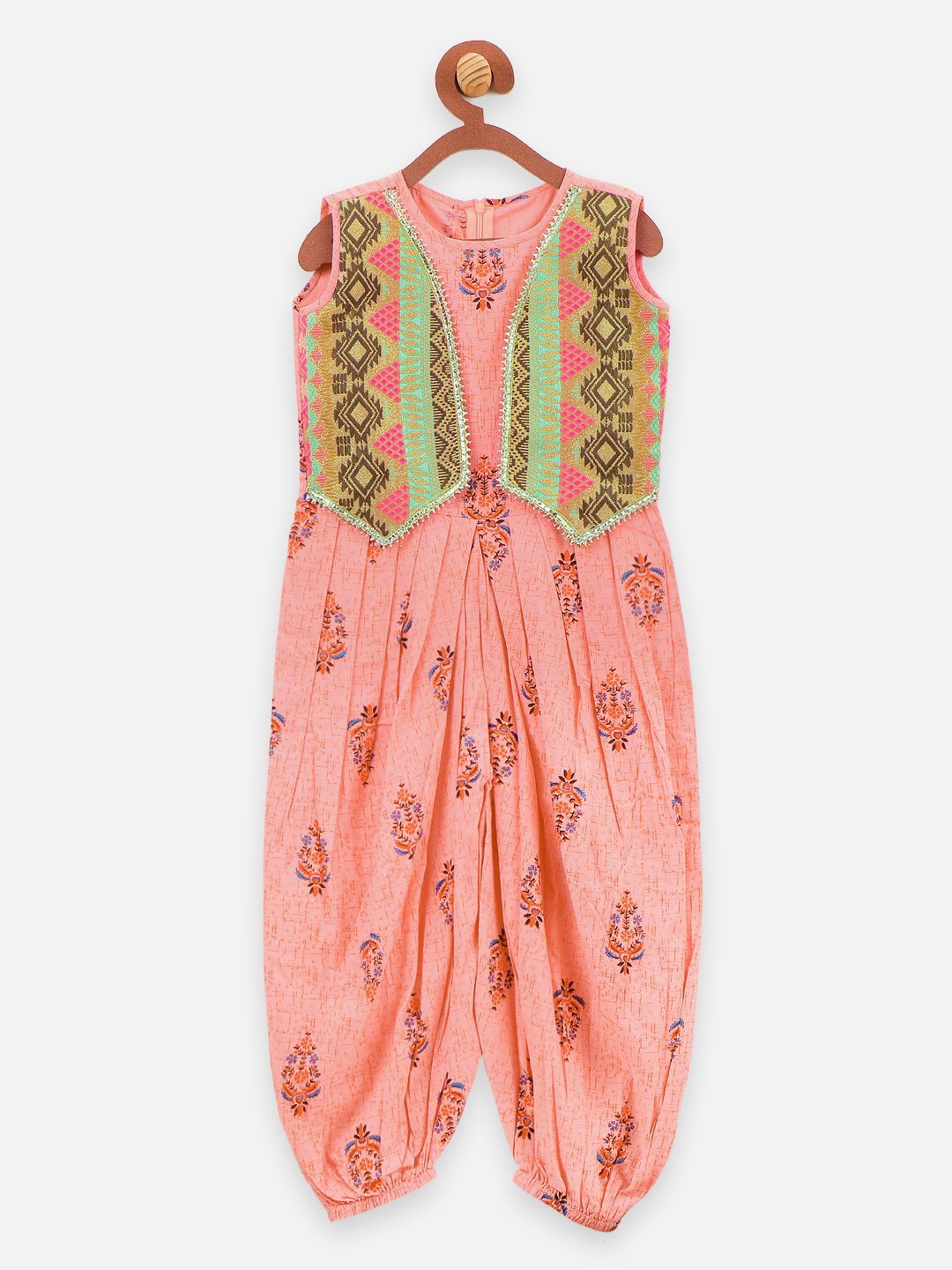 Lilpicks Ethnic style Peach Printed Dhoti jumpsuit