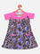 Pink printed woven A-line dress, has a round neck, short sleeves, and flared hem