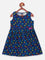 Blue-colored  All Over Printed Bow Flared Dress, has a round neck,
