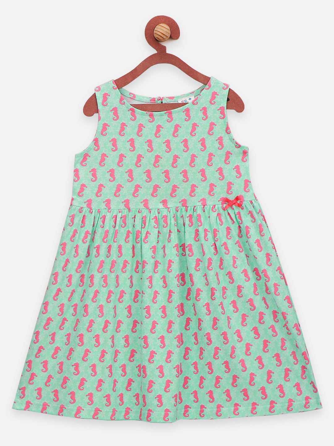 Pink and green All Over Printed Pack of 2 Bow Flared Dress