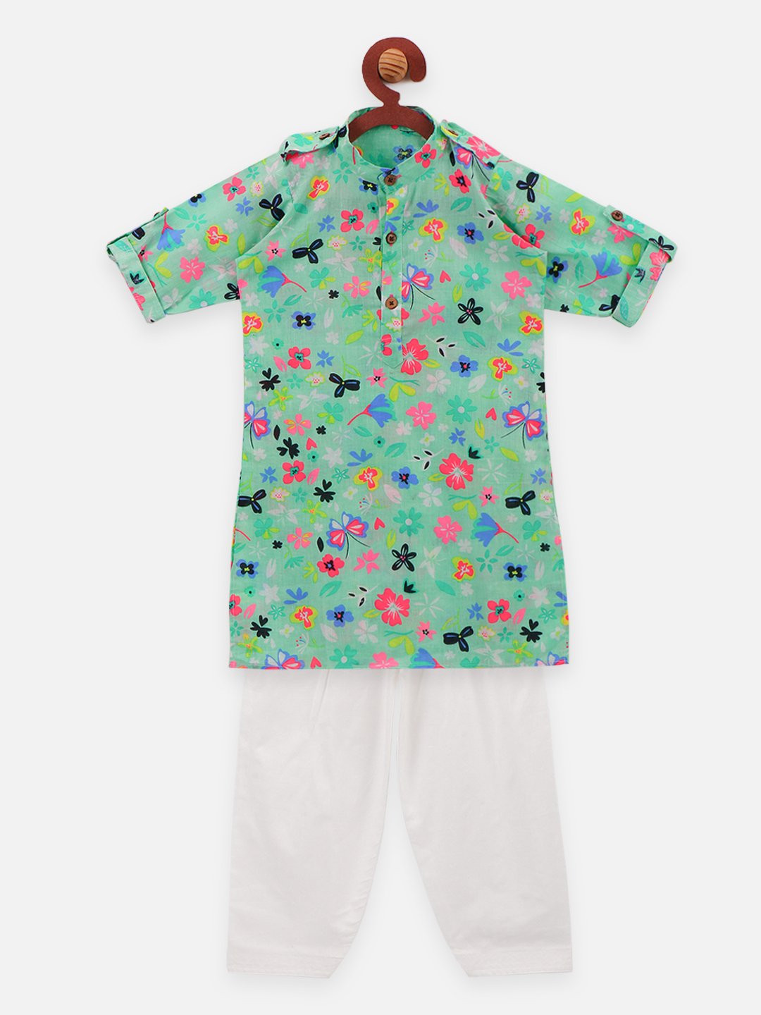 Green colour flora print kurta salwar