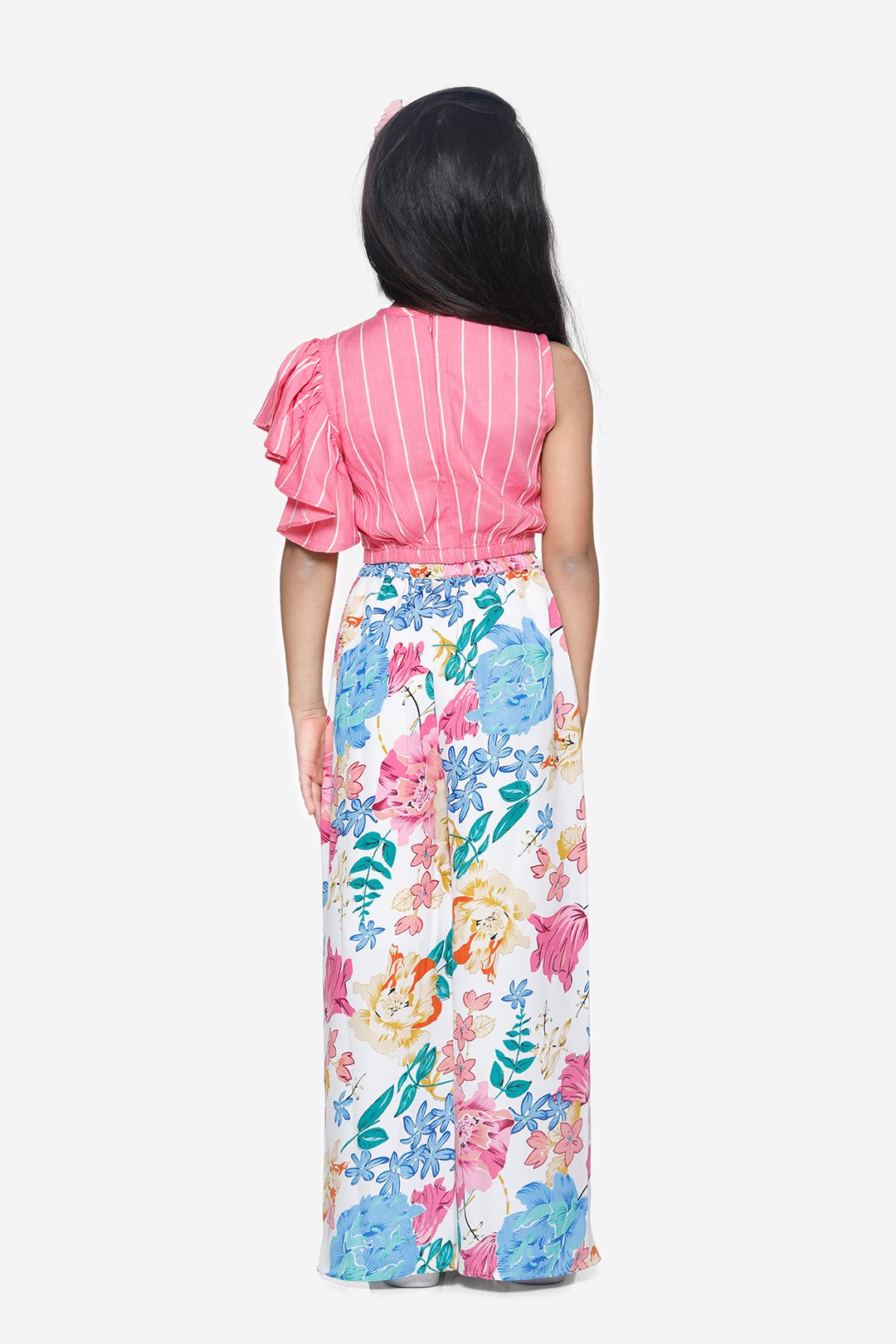 Pink Stripe Ruffle Top with Floral tulip palazzo pant Set