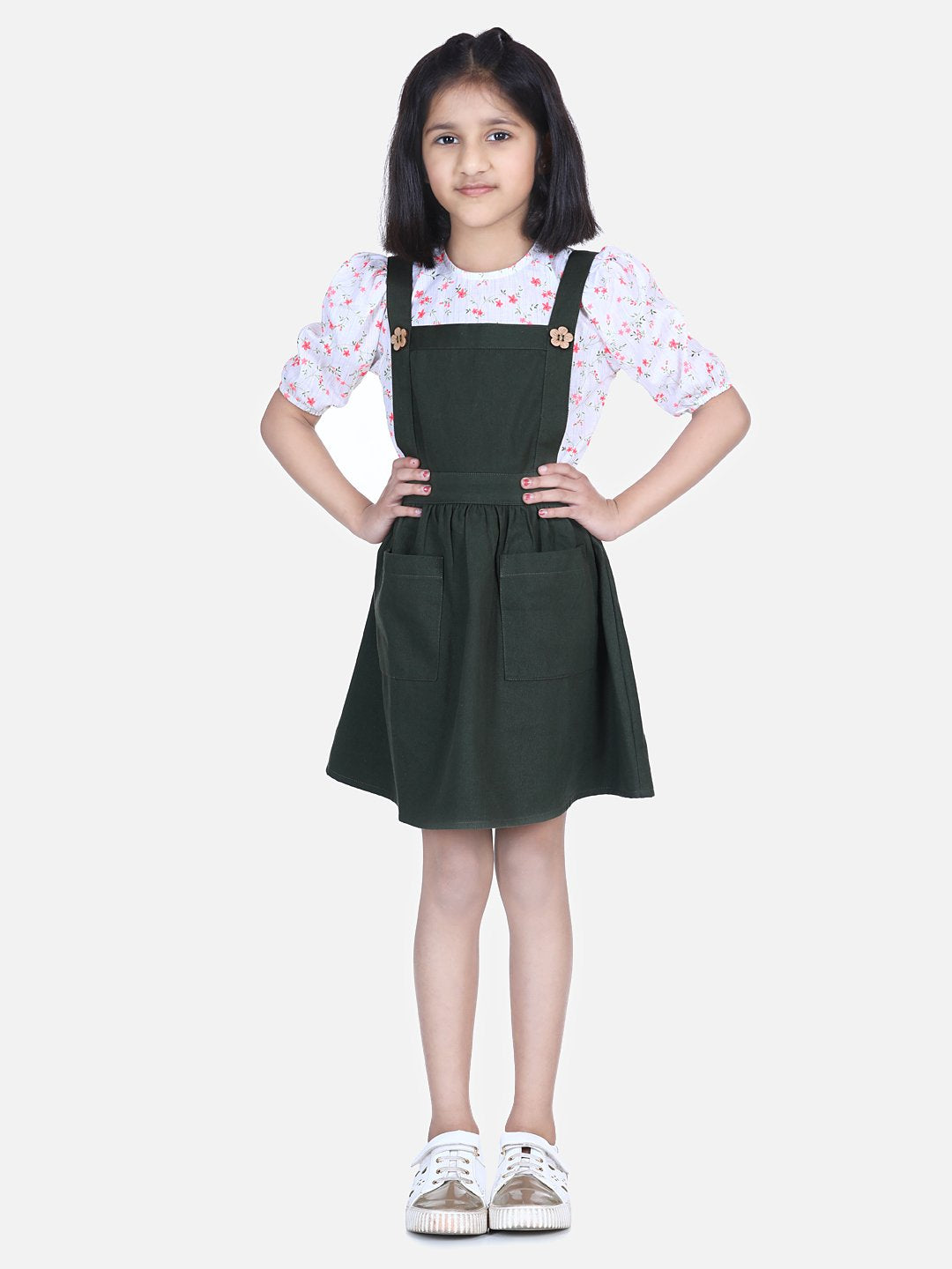 Flounce Top with Olive Skirt Dungaree Set