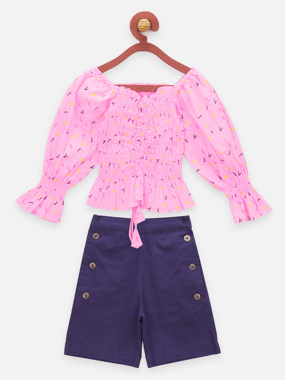 Neon Pink Smocking Top with Navy Shorts Set
