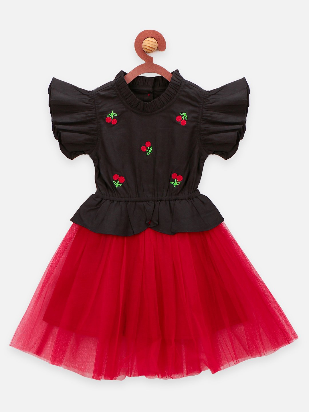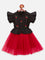Lilpicks Black Maroon Cherry embroidery Flared Dress